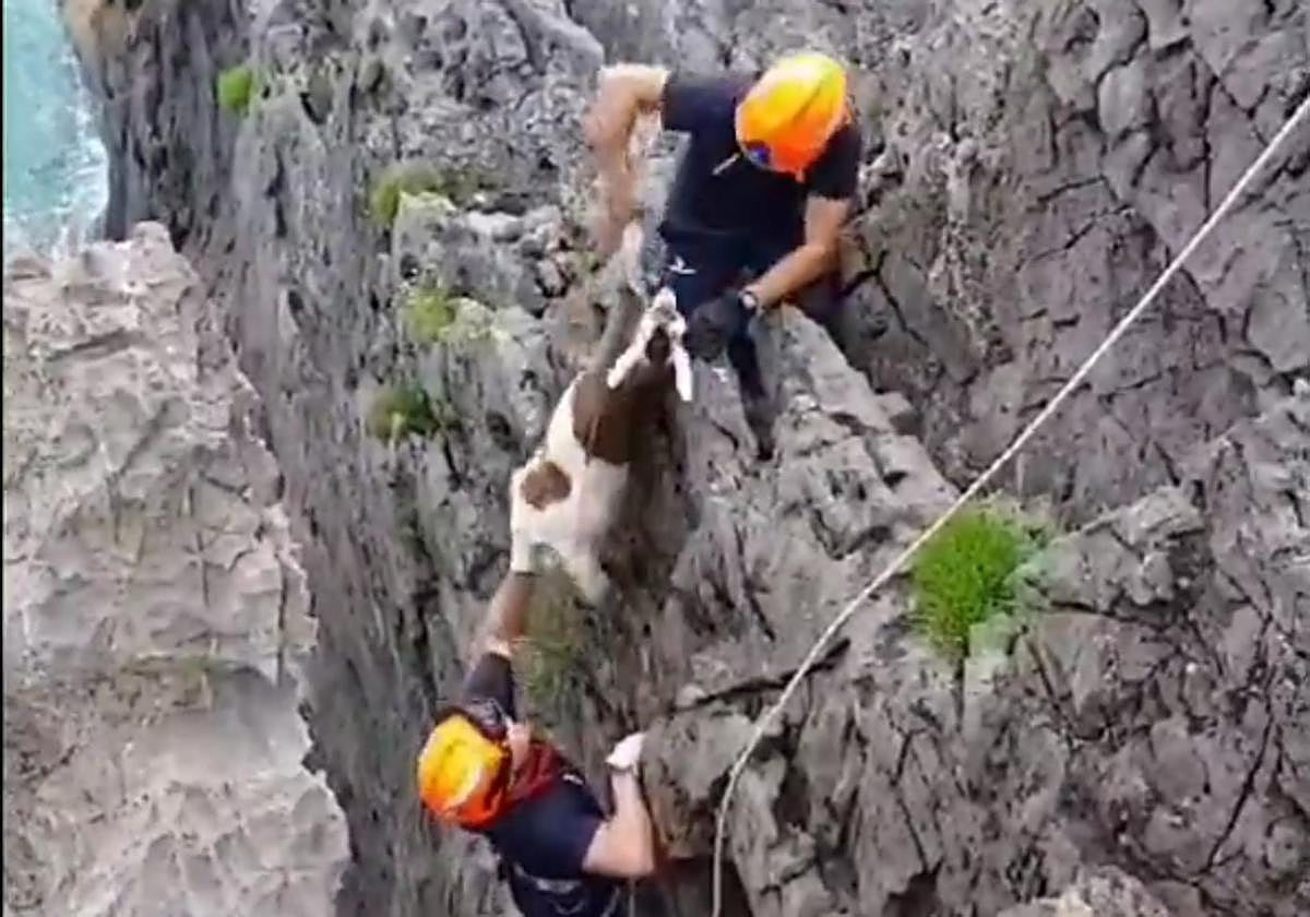 No es la primera vez que los bomberos tienen que intervenir en similares circunstancias, con animales que quedan enriscados o caen por simas. El pasado verano, por ejemplo, fue rescatado un cabritillo en el barranco de Santa Clara y otra cabra en una cueva entre Andrín y San Roque del Acebal, también en Llanes.