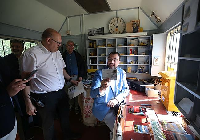 El presidente del Principado se sube a bordo del tren histórico entre Oviedo y Busdongo para celebrar los 140 años que cumple la rampa y anuncia que Fomento «está trabajando en un estudio para saber qué nuevos usos se le puede dar para negociar con el Gobierno de España»