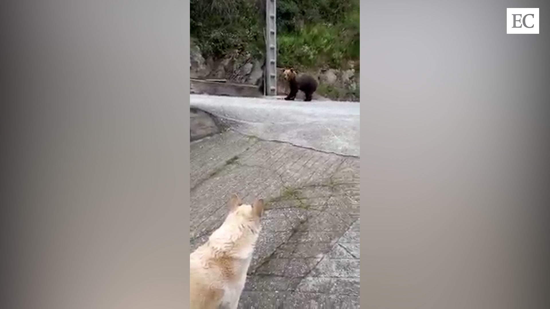 Sorprendente aparición de un oso en una carretera de Cangas del Narcea
