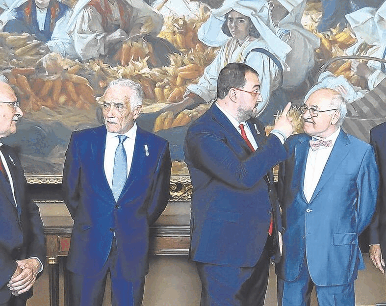 El palacio que alberga la Junta General se vistió de largo para acoger ayer al mediodía la toma de posesión del presidente del Principado. Fue, ... como marca el protocolo, una ceremonia solemne que comenzó con puntualidad extrema -una vez que sonó la campana 'Wamba' de la Catedral de Oviedo, tal y como se advirtió minutos antes por megafonía- y en la que hasta el último detalle debía seguir el guión establecido. Quizá por eso fue especialmente emotivo que, una vez que Adrián Barbón dio por finalizado su discurso, el expresidente del Principado Pedro de Silva se saltara todas las formalidades y lanzara un espontáneo y cariñoso: «¡Suerte, presidente!». El guiño, refrendado por el también expresidente José Luis Rodríguez-Vigil, generó una nueva salva de aplausos, seguida del 'Himno de Asturias', interpretado a la gaita por Vicente 'El Pravianu' y, al tambor, por su hija Elena.