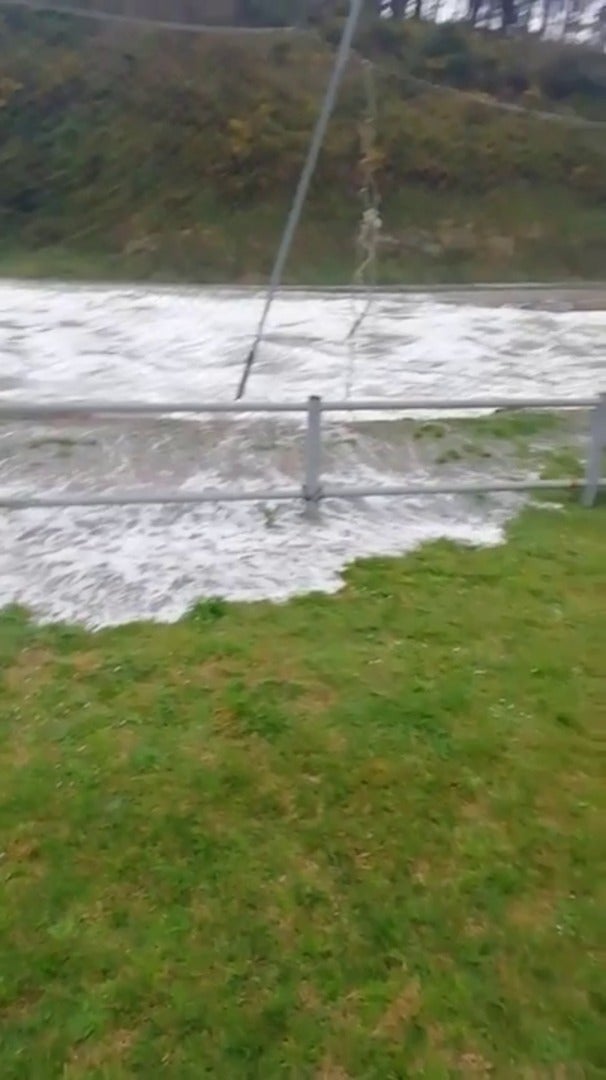 El agua llegó a entrar por un lateral del campo de fútbol de A Xungeira, ubicado en el entorno de las playas, aunque en menor medida que en otras ocasiones cuando llegó a anegar las instalaciones.