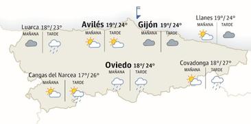 A las 11 de la mañana, la estación meteorológica de Mieres registró 25,3 grados; la de Villayón, 24,5, y la de Piloña, 23,8. Media hora más tarde, la del aeropuerto certificó los 24,9; y la de Oviedo los 24,6. Con estos datos antes del mediodía, y la previsión de la Agencia Estatal de Meteorología (Aemet) de que Asturias superará hoy los 26 grados y llegará a los 31,8, Salud ha decretado la alerta por calor.