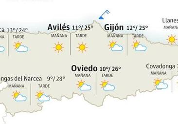 El fin de semana no caerá una gota sobre el Principado y este domingo sí sobrará la 'chaquetina', ya que en Langreo o Cangas del Narcea se podrán alcanzar los 28 de máxima; Oviedo alcanzará los 26 y Gijón se quedará en los 25, según la previsión de la Agencia Estatal de Meteorología (Aemet).