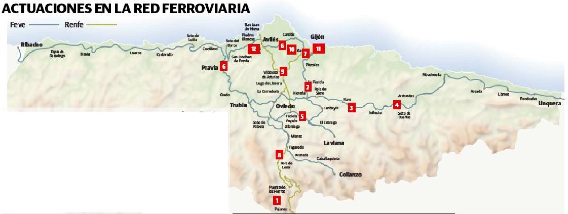 -Recta final de la renovación integral de Gijón-Laviana, Colloto-Infiesto y bloqueos de Pravia-Gijón El soterramiento seguiría en obras.