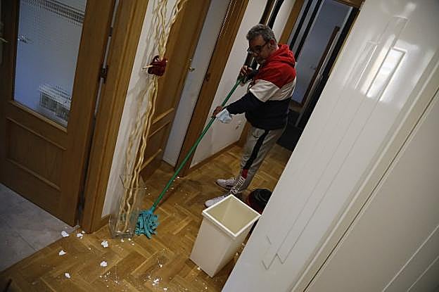 Agentes de la Policía Nacional estuvieron registrando la vivienda donde se originó el fuego. La zona de la cocina por donde se unen los dos pisos está casi desaparecida, al igual que varias habitaciones. Las primeras comprobaciones confirman que la estructura del edificio no está dañada. Lourdes Batista y su hija Isabel Nepomuceno, vecinas de planta de la fallecida, intentan borrar las huellas que el incendio ha dejado. «Lo peor fue el agua porque reventó una tubería y se unió a la de los bomberos. Fue horrible», explican.