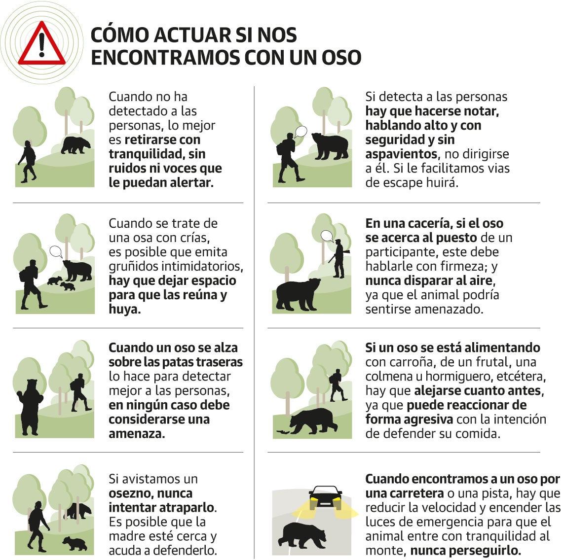 Por ello, la Fundación recuerda dos puntos básicos para cualquier situación en la que te encuentres con un oso a tu paso: