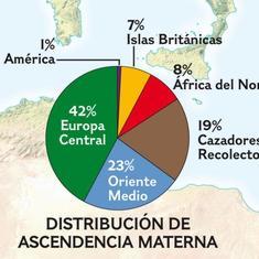 Pero son el resto de orígenes los que han generado sorpresa en los científicos de National Geographic. Así, en el caso de los linajes maternos, un 23 por ciento de ellos proceden de Oriente Medio; un 8 por ciento, del norte de África; un 7 por ciento, de las islas británicas, y un escaso 1 por ciento, de América. Sin embargo, el 19 por ciento restante se corresponde con los denominados linajes recolectores y cazadores, los más antiguos de los que se tiene constancia.