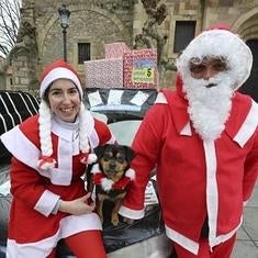 Por cierto, la adivinanza condujo a los equipos hasta el Donde Queráis en la avenida de Fernando Morán, donde debían presentarse con dos caretas de ratón. Allí recibían un segundo sobre con una nueva adivinanza y, con ella, otro reto. Guillermo Muñiz y Merce Rega suman siete participaciones, y ayer fueron algunos de los veteranos que volvieron a disfrutar de esta cita, esta vez con su 'Regalos'. Vestidos de Papa Noel se inspiraron en la cercanía de las Navidades, y a falta de reno, llevaron a su perro.