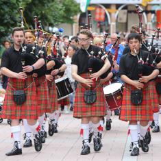 La vestimenta de los escoceses no sorprendió a nadie. Como para ellos el tiempo asturiano no es frío todos los hombres salieron a desfilar ataviados con el tradicional 'kilt', la falda masculina característica de Escocia e Irlanda que consta de unos ocho metros de tela muy plisada en los costados y el trasero y tablas cosidas a la altura de la cintura. En lo musical destacó el potente sonido de sus gaitas y tambores, una melodía tan característica que en mucho sitios ha adquirido la denominación de 'war pipes', o gaitas de guerra.