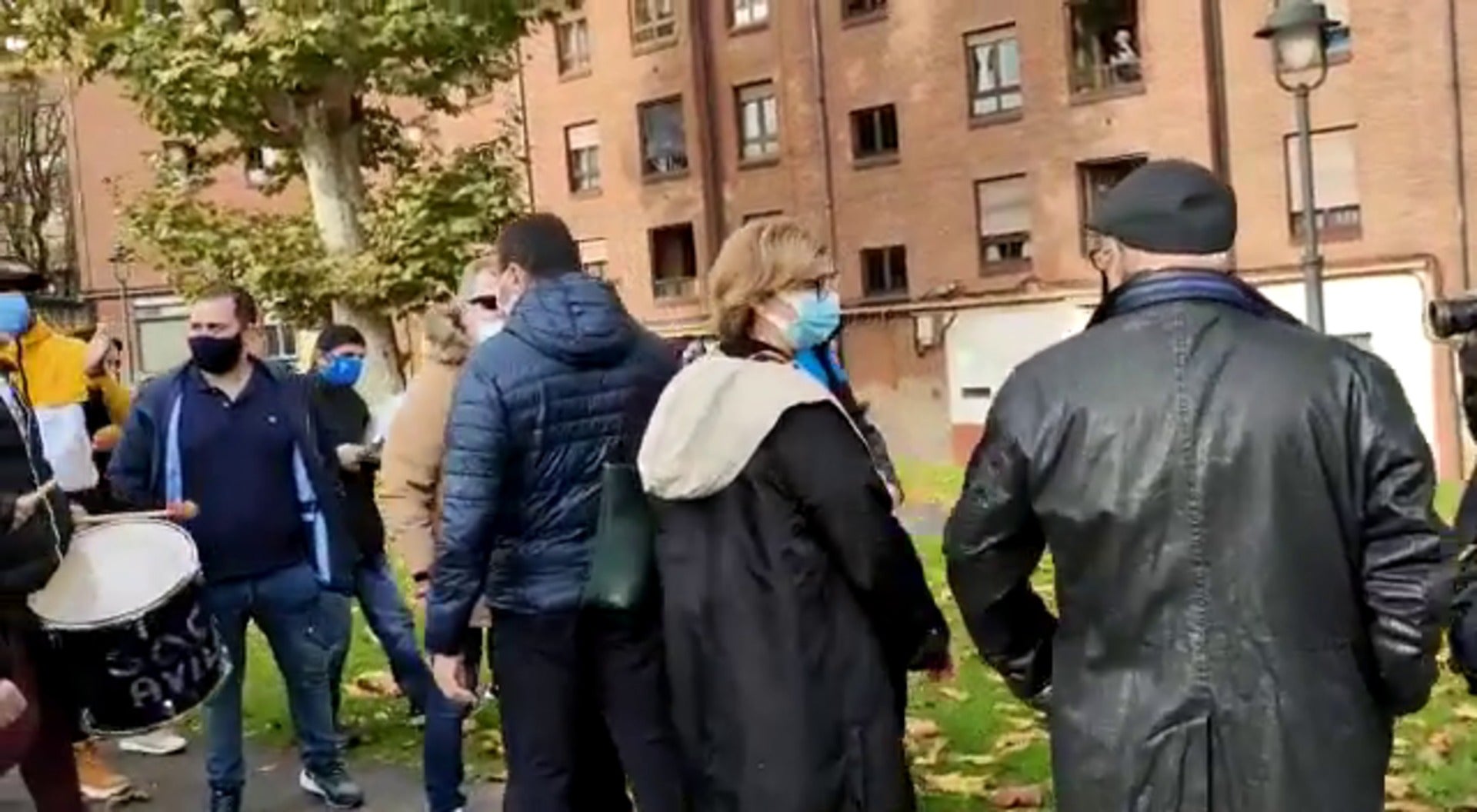 El descontento de los hosteleros en Avilés sube de tono y acaba con Mariví Monteserín escoltada cuando acudía a la inauguración de un monolito en homenaje a la labor del voluntariado durante esta crisis sanitaria provocada por el covid-19.