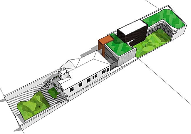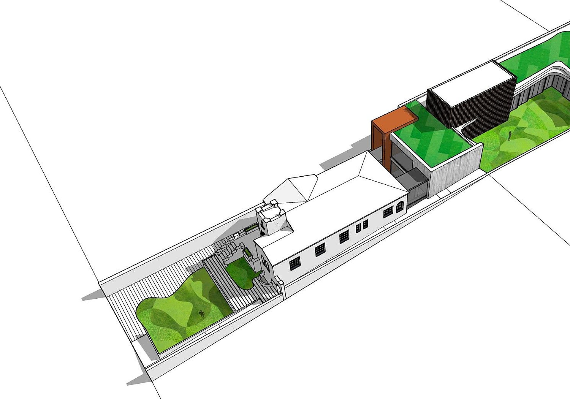 La edificación existente ocupa de planta unos 117 metros cuadrados y la de nueva construcción unos 397, por lo que queda a disposición de zonas ajardinadas unos 300 metros cuadrados en los que se podrán desarrollar actividades terapéuticas y que contarán con itinerarios accesibles. Además, cabe señalar que como nexo de unión entre ambos edificios se plantea mantener el patio ingles posterior de la edificación existente que se atribuye al arquitecto Manuel Busto en 1928, «para conservar en la medida de lo posible, tanto la volumetría como las características exteriores del inmueble protegido».