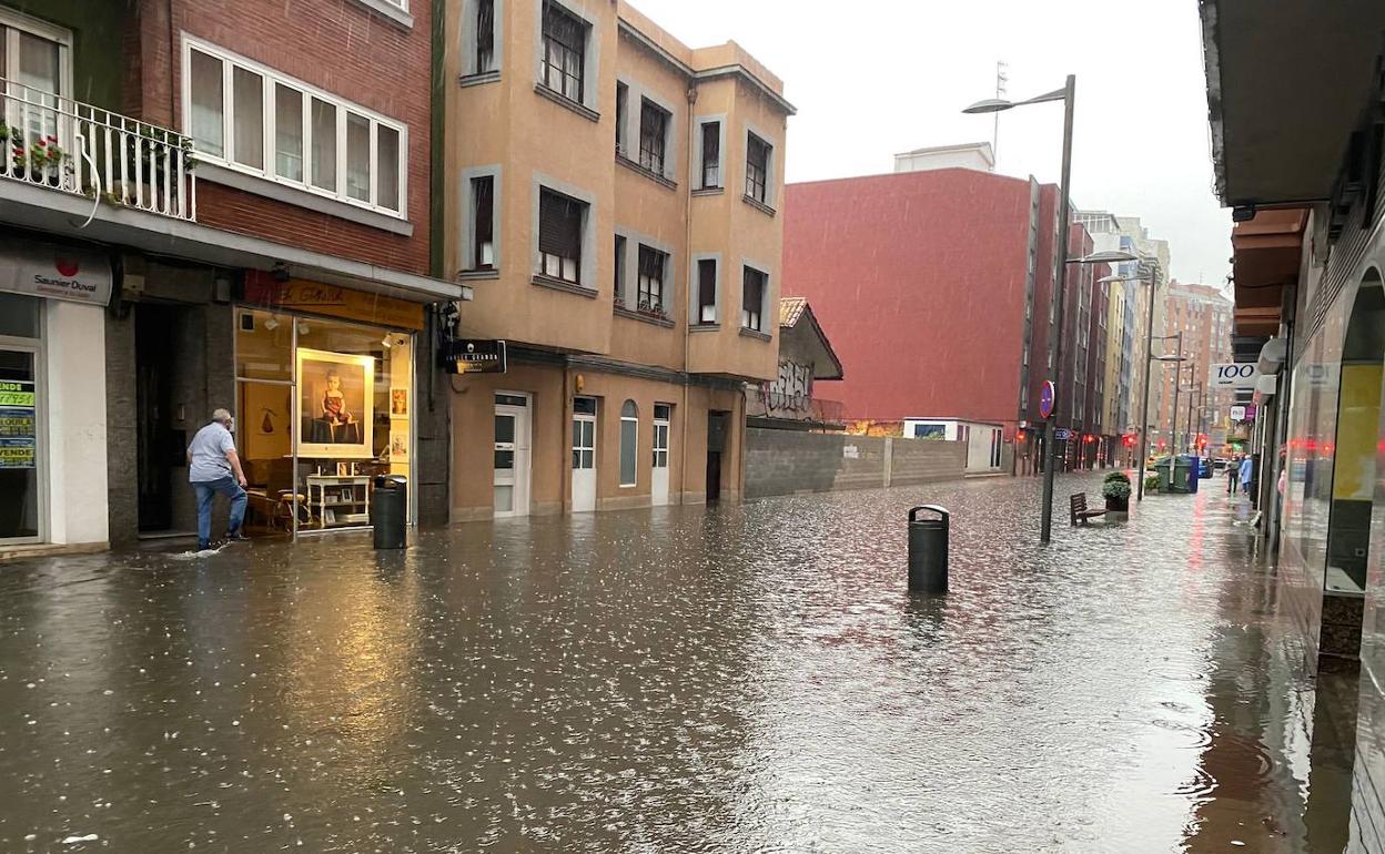 Coincidiendo con la pleamar se están produciendo los habituales problemas de evacuación en momentos de intensas lluvias. La calle Llano Ponte y la rotonda de los oficios están completamente anegadas y la Policía Local ha tenido que cortar la circulación en el cruce con la calle La Libertad, que quedó parcialmente reabierto a la una menos diez de la tarde.