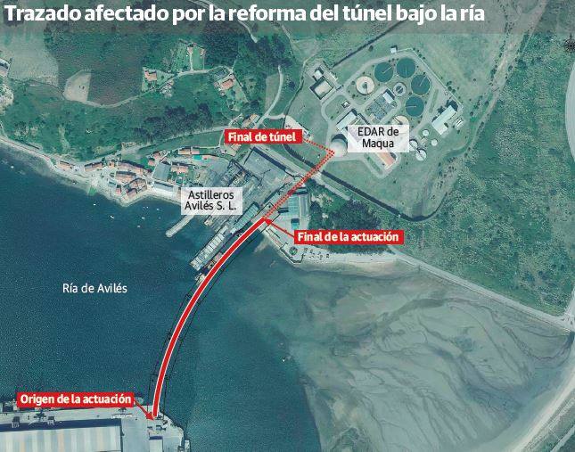 Las obras de reforma del túnel bajo la ría de Avilés no afectarán al funcionamiento de los colectores