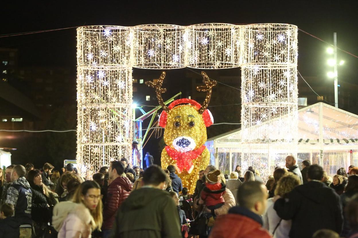 La explosión de luces y colores del gran árbol navideño que corona El Parche sorprendió a los cientos de personas que se reunieron para presenciar el pistoletazo de salida de la época navideña. El acto contó con la participación especial de un grupo de alumnas de cuerda del Conservatorio Municipal Profesional Julián Orbón, que interpretaron conocidas canciones navideñas y villancicos acompañadas de un coro bajo la dirección de Isabel Baigorri. Las palmas y los aplausos empezaron a sonar mucho más fuertes cuando interpretaron el famoso 'Hacia Belén va una burra' o 'Noche de paz'.