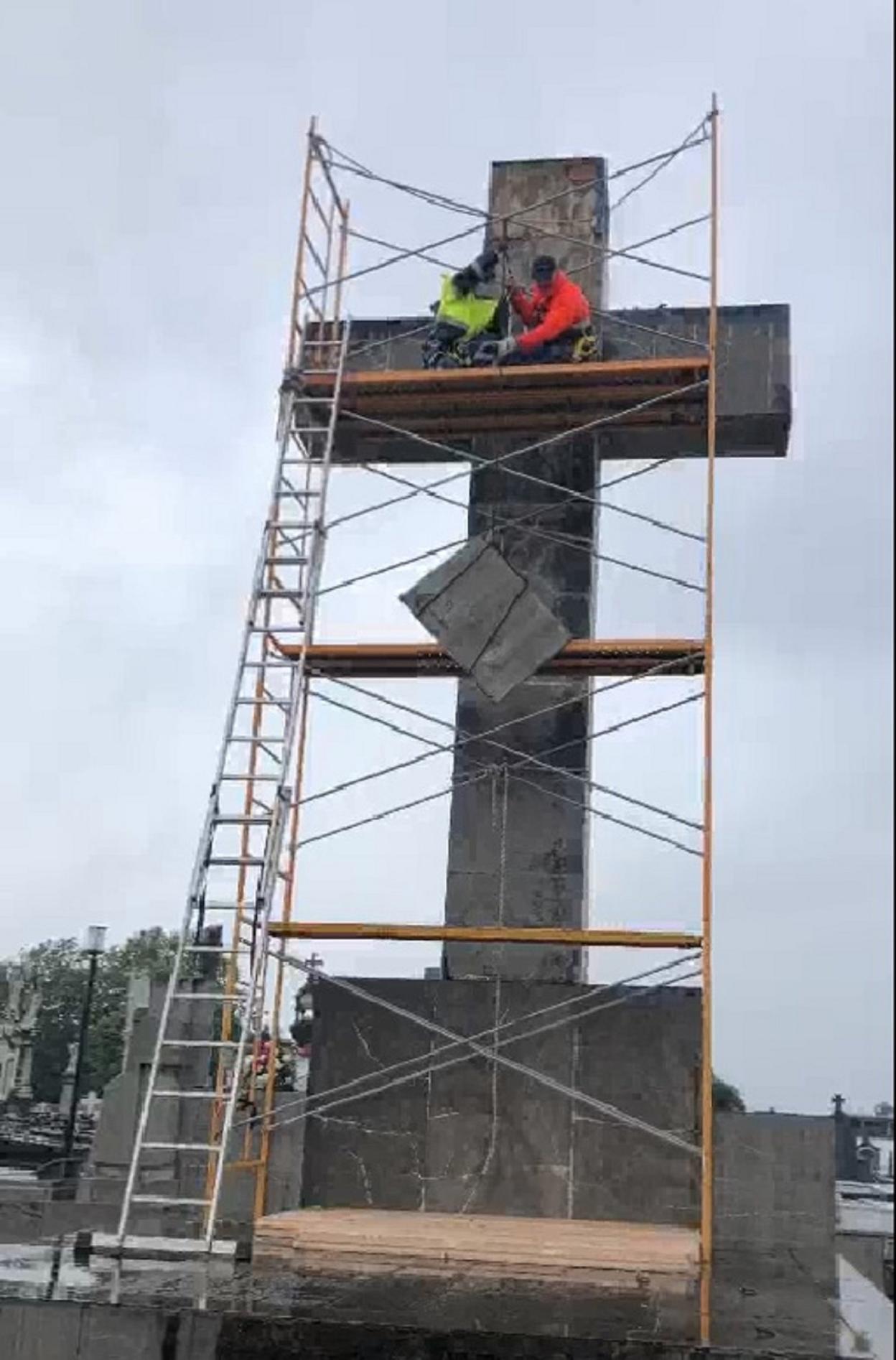 Lo que ayer se suprimió fueron las placas con la inscripción 'Presentes', que ocupaban todo el segmento vertical de la cruz, en cuya base se encontraban además un yugo y unas flechas, así como dos fechas inscritas, la de 18 de julio de 1936, día en el que las tropas del general Franco se levantaron contra la República, y la de 21 de octubre de 1937, cuando se produjo la caída de Avilés.