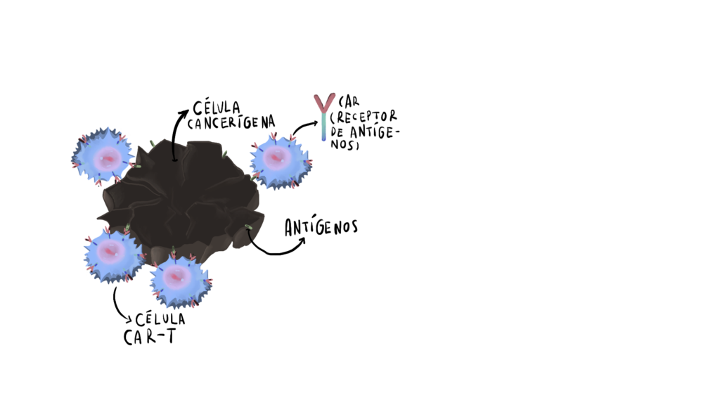En ese procedimiento se obtienen estas células, que se mandan al laboratorio y se modifican genéticamente para introducirles un receptor a esos linfocitos T, que es el CAR. Una vez modificados para que ataquen las células tumorales, los linfocitos se vuelven a transferir al cuerpo del paciente para que puedan reconocer y destruir las células cancerosas.