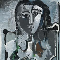 'Femme au chat assise dans un fauteuil', lienzo de Picasso.