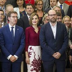 La Reina ha presidido la ceremonia de inauguración de la convención anual del órgano de difusión de la cultura y lengua española, que vuelve a celebrarse en Galicia siete años después. Al acto también han acudido el presidente de la Xunta de Galicia, Alberto Núñez Feijóo, el alcalde de Santiago, Martiño Noriega, o el secretario de Estado de Cultura, José María Lassalle, entre otras personalidades.