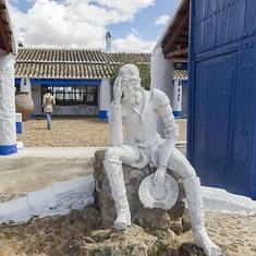 El célebre Quijote pensante que preside la entrada de El Aprisco.