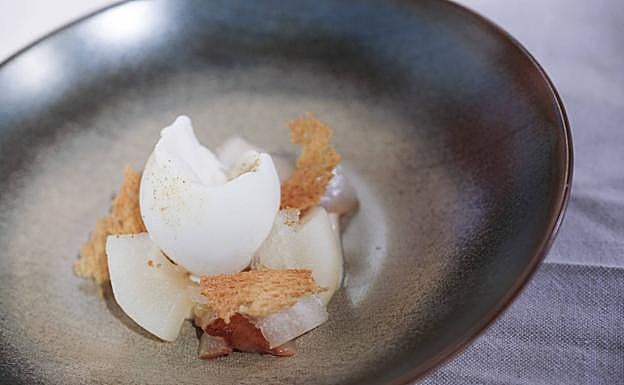 Ya lo había anunciado Signes, de 26 años, estudiado en el Cordon Bleu de Madrid y con dos años en su actual trabajo: «Ofrezco una pastelería de cuchara y recomiendo comer todo junto», decía en su presentación escrita para mantener el anonimato exigido en la gesta. «Pretendo poner la fruta en valor y conseguir que esta pera tan rica pueda estar disponible unos meses más».
