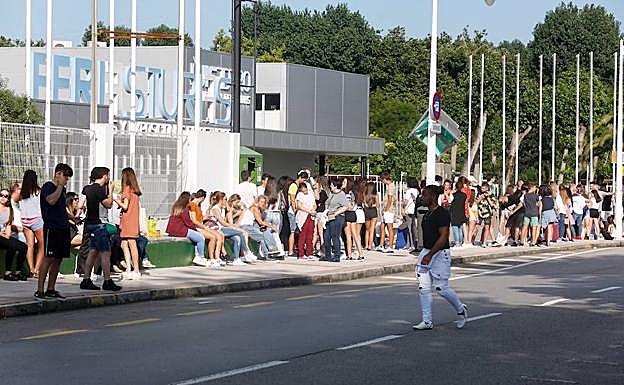 El público gijonés ya hace cola para disfrutar del concierto del rapero Bad Bunny en el Parque de los Hermanos Castro, que dará comienzo alrededor de las 22 horas. Tres horas antes de este directo dentro de la programación del Gijón Life, muchos admiradores del cantante se apostaron a las puertas del recinto para ver al compositor en primera fila.