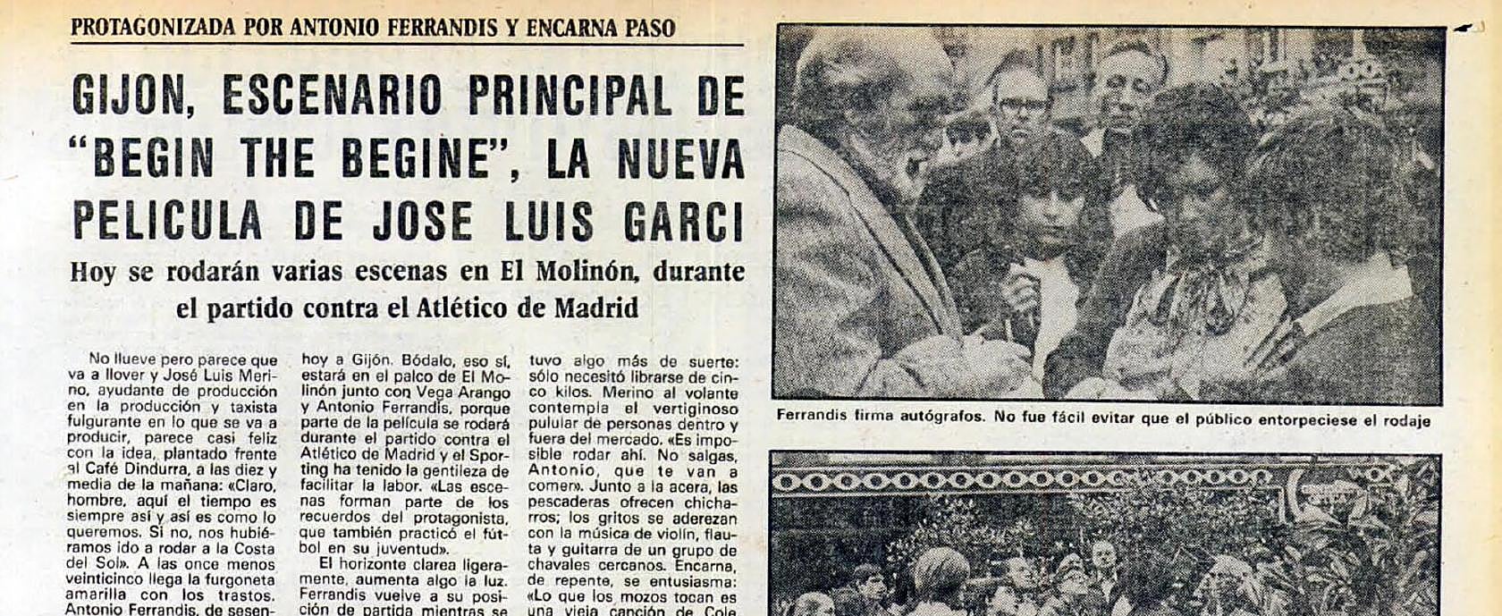 Un hito narrado por la prensa. ELCOMERCIO fue testigo y parte del rodaje y del estreno mundial en GijónFaltaba un mes largo para que en España resonase los tambores de la guerra que no fue cuando el equipo de Garci se presentó en Gijón para ejecutar el nuevo proyecto del director. Cuando comenzó a rodarse 'Begin the beguine' estábamos cerca del golpe de estado que dejó sin aliento al país durante unas horas del 23F y que la ciudad fuera plató de cine era aún algo tan insólito que ELCOMERCIO cubrió con todo detalle la llegada del equipo al café Dindurra, donde, a las diez y media de la mañana del 17 de enero de 1981, empezó todo.