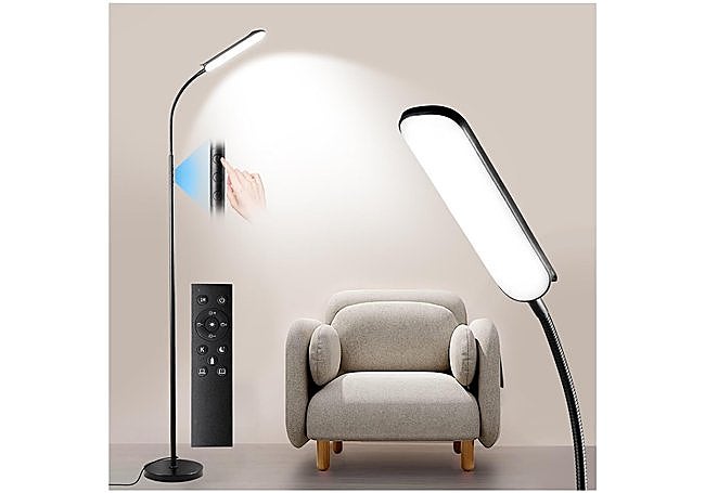 Con un diseño contemporáneo y pantalla orientable, la lámpara de pie LED TRUMPETS ofrece una potencia de 18W y 2200 lúmenes, logrando gran luminosidad. Incorpora ajuste lineal de brillo y temperatura de color, además de control remoto magnético y táctil. Su base reforzada proporciona estabilidad, mientras que el cuello flexible permite adaptar la luz a cada necesidad del espacio.