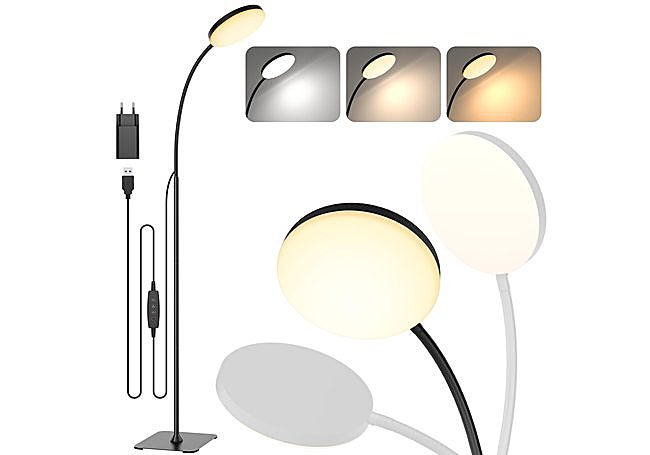 Con un diseño compacto y ligero, la lámpara de pie LED Mojimdo ofrece tres temperaturas de color y diez niveles de brillo, adaptándose a diferentes ambientes. Su cuello flexible de 360° permite ajustar fácilmente la dirección de la luz. El control táctil y la instalación sin herramientas completan una propuesta eficiente y versátil para iluminación interior moderna.