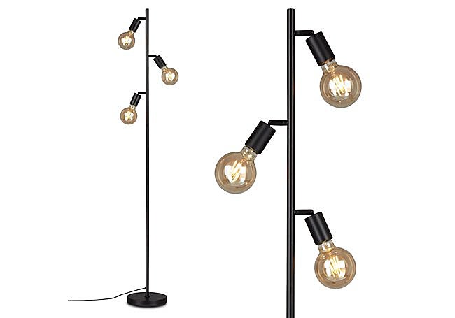 Con un diseño retro en acabado negro, la lámpara de pie Briloner 1387-035 destaca por sus tres focos orientables y estructura metálica robusta. Permite controlar la dirección de la luz gracias a los cabezales giratorios y el práctico interruptor de cable. Su formato admite bombillas E27 y aporta un toque vintage a cualquier estancia sin complicaciones.