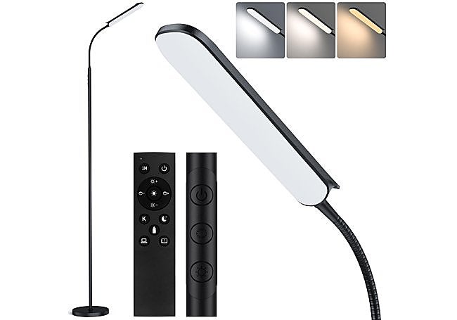 Con su diseño moderno y estructura robusta, la lámpara de pie LED Yikuneng ofrece 18W de potencia y 1800 lúmenes para una iluminación eficiente. Incorpora control remoto magnético, ajuste lineal de temperatura de color y brillo, así como cuello de ganso flexible. La base pesada garantiza estabilidad, mientras la función de memoria aporta comodidad en cada uso diario.