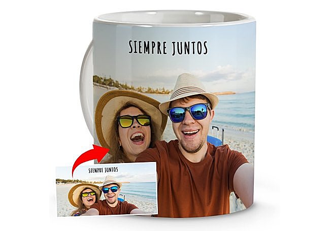 La taza LolaPix, elaborada con cerámica resistente, tiene una capacidad de 330 ml para bebidas calientes o frías. Es apta para microondas y lavavajillas, lo que facilita su uso y limpieza. Además, ofrece la opción de personalización con fotos y textos.