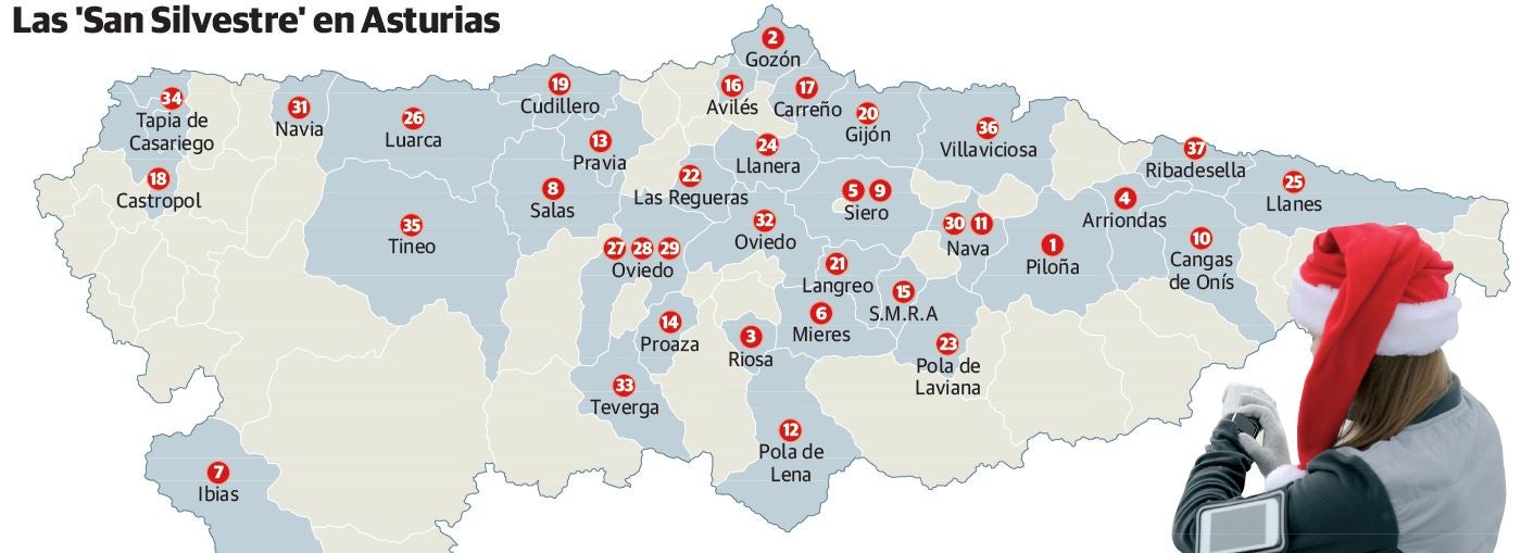 Las carreras de San Silvestre levantan hoy el telón en Asturias. Como viene ocurriendo desde hace unos años, algunas pruebas adelantan su celebración para contar con mayor participación y no rivalizar con las 'grandes'. Las pruebas que se celebran en Gijón, Oviedo y Avilés volverán a ser las más multitudinarias entre las casi cuarenta que, con esa denominación, se celebrarán en el Principado hasta el 31 de diciembre. En ellas, los asturianos tendrán la oportunidad de calzarse las zapatillas y vestirse de corto para vivir de forma deportiva en sus calles los últimos días de 2024. No faltarán, por otra parte, las que elegirán la bicicleta o la piragua en el día más deportivo del año.