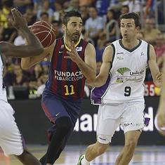 Juan Carlos Navarro, del Barcelona, intenta superar a Ryan Toolson.