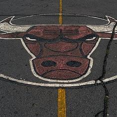 El escudo de los Bulls, pintado en el suelo de una cancha callejera