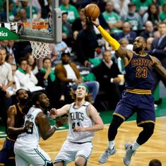 La estrella de Cleveland anotó 35 puntos para sentenciar a Boston y se convirtió en el máximo anotador en la historia de los 'playoffs'