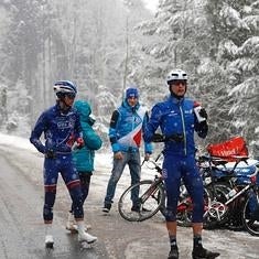 El año pasado, la Unión Ciclista Internacional modificó su reglamento para evitar que los corredores asumieran demasiados riesgos en condiciones extremas. "Hubo una mejora meteorológica después de una veintena de kilómetros, eso nos dio esperanza de pasar, pero la nube se quedó bloqueada encima del puerto de Echarmeaux, el paso por allí estaba blanco", explicó el director de la carrera, Thierry Gouvenou.