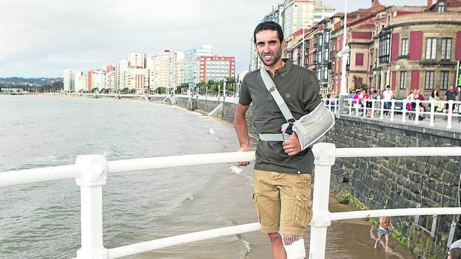 La rodilla le quedó, como se dice coloquialmente, como un cromo. Y lleva el brazo en cabestrillo (se le diagnosticó una rotura de omóplato con luxación de hombro). El ciclista Dani Navarro (Gijón, 1983) sufrió una grave caída en la antepenúltima jornada del Tour de Francia, finalizado el pasado domingo, que le forzó a retirarse cuando aspiraba a lograr el premio de la combatividad. Ahora ya descansa en Gijón, donde se recupera de las heridas y piensa ya en volver a dar guerra con el Cofidis la próxima temporada.