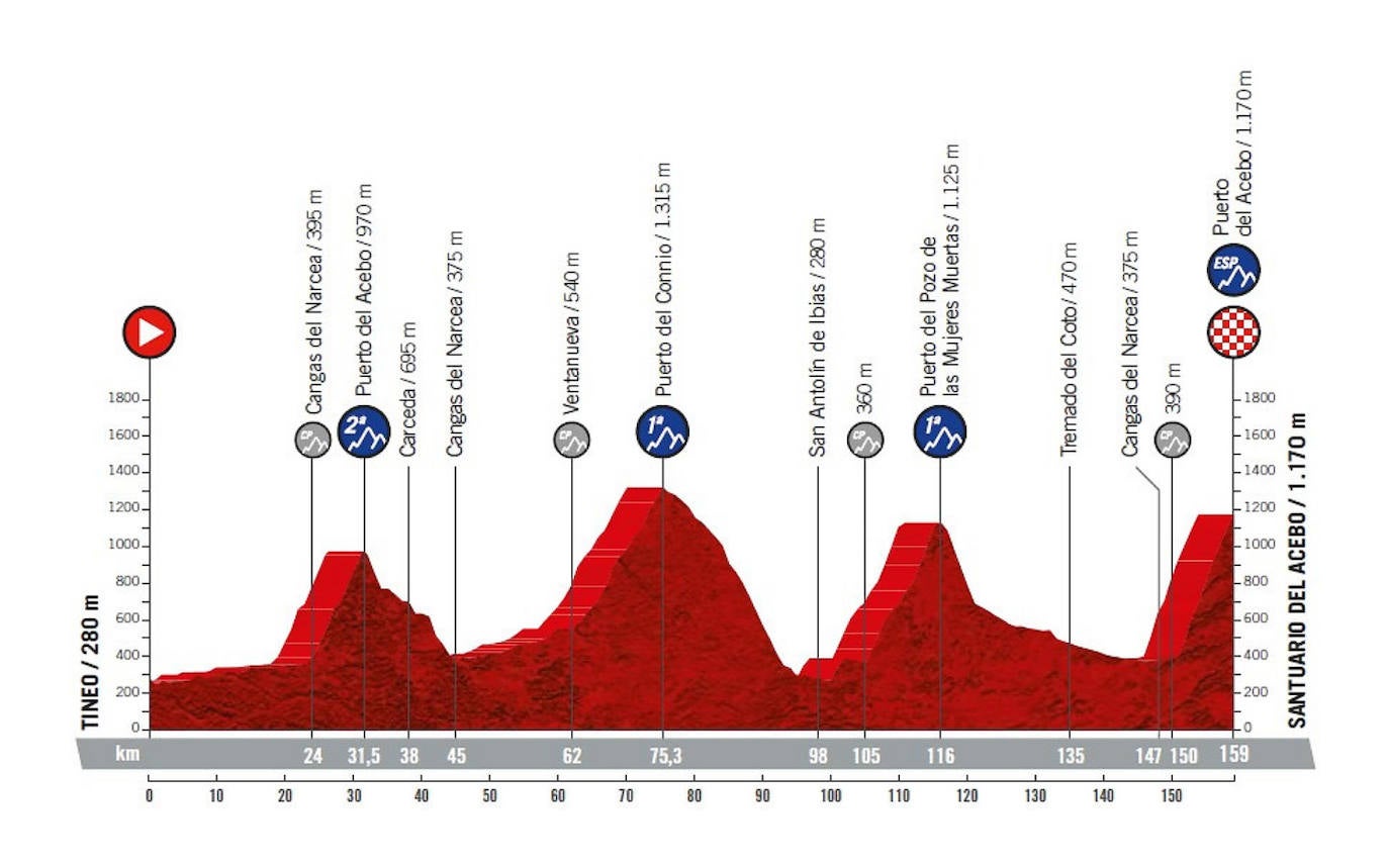 El 8 de septiembre, Día de Asturias, la vuelta pasará por el Acebo, con un doble paso por dos de las vertientes del puerto de Cangas del Narcea. La primera subida es la más amable y la segunda, y última del día, la dirección la ha elevado a categoría especial.
