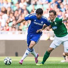El hispanobrasileño Diego Costa, traspasado este verano por el Atlético de Madrid al Chelsea inglés por 38 millones de euros, se estrenó este domingo como goleador de su nuevo equipo al anotar el primer gol del triunfo ante el Olimpia Liubliana (1-2).