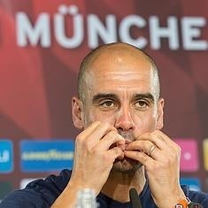 El extécnico del FC Barcelona es deseado por el Manchester City, actualmente bajo las órdenes del chileno Manuel Pellegrini, desde hace tiempo aunque niega que ya tenga un acuerdo. La salida de Guardiola al final de su tercera temporada en el conjunto bávaro, y su sustitución por el italiano Carlo Ancelotti, fueron anunciadas por el club el 20 de diciembre pasado al término de la primera vuelta de la Bundesliga. «Carlo es el entrenador perfecto para este equipo. Estoy seguro de que todo irá bien para él y para el Bayern», afirmó Guardiola.