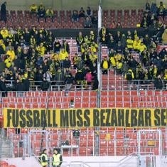 "El fútbol debe seguir siendo asequible", escribieron en una pancarta que exhibieron en un estadio donde el precio de las entradas va desde los 38,50 euros a los 70. "En este caso, Stuttgart aumentó los precios de los billetes un 25% y los aficionados lo han criticado, nosotros les apoyamos", declaró el portavoz del Borussia Dortmund Sascha Fligge en una conferencia de prensa tras el partido.