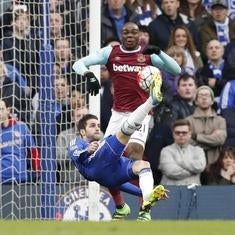 Los tantos de Cesc llegaron en el tiempo añadido de la primera parte y luego en el minuto 89 (de penalti), para así neutralizar los goles de Manuel Lanzini (min.17) y de Andy Carroll (min.61) para el equipo visitante.