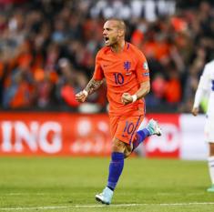 Eso sí, el mediapunta nacido en Utrecht comenzó su carrera internacional en el banquillo, a la sombra de su entonces compañero del Ajax. Pero Advocaat confiaba en él y nunca dejó de darle minutos. Poco a poco, y pese al cambio de seleccionador, Sneijder fue ganando peso en el equipo hasta el punto de no perderse una cita desde entonces. La Eurocopa de Austria y Suiza le proclamó, y el Mundial de Sudáfrica le coronó como 'rey' tulipán. Aquel 2010 mereció el Balón de Oro tras guiar al Inter de Mourinho hacia el triplete y a Holanda a la final de Johannesburgo.