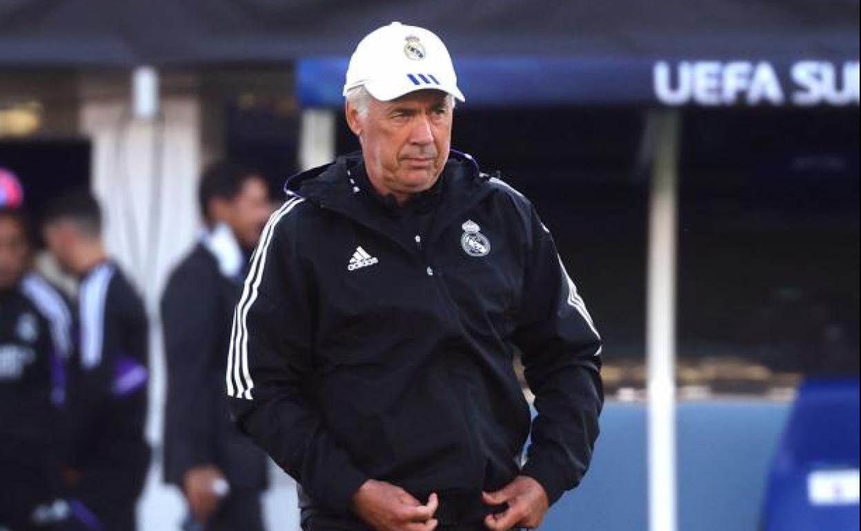 El técnico italiano valoró la calidad de una plantilla «mejorada» en la previa de la Supercopa de Europa junto a Benzema y Modric, en un ambiente distendido y por momentos divertido
