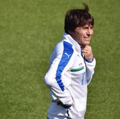 Antonio Conte, durante un entrenamiento de la selección italiana.