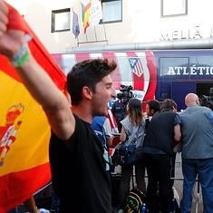 Aficionado del Atleti a la llegada de los rojiblancos al hotel.