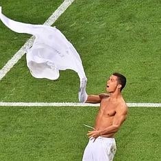 La estrella portuguesa del Real Madrid, Cristiano Ronaldo se mostraba muy feliz tras la agónica tanda de penaltis en la que el equipo blanco salió vencedor.