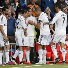 Los jugadores del Real Madrid celebran un gol.