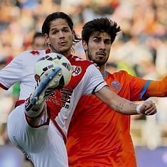 El duelo se incendió con una acción de roja clara a Morcillo a los 62 minutos. André Gomes rompió a la defensa local en velocidad y cuando se encaminaba a encarar a Toño era derribado por el central rayista al borde del área. La falta la colocó Parejo en la escuadra, en el palo de Toño al que de nada sirvió su estirada.