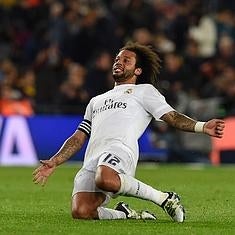Marcelo, lateral izquierdo del Real Madrid, se mostró muy satisfecho al finalizar el partido donde el club blanco consiguió una importante victoria contra el Barcelona, en un duelo en el que tuvieron que remontar el gol inicial de Gerard Pique. «Lo mas importante son los tres puntos», indicó antes de destacar lo mucho que el Madrid tuvo que luchar para conseguir la victoria y por ello. «Jugar contra el Barca es muy difícil», recordó un Marcelo que destacó la actitud del equipo y el saber «sufrir», cuando las cosas no iban a favor de los visitantes. «Hemos conseguido tener el balón y hemos tenido más paciencia», recordó antes de destacar la gran labor de los jugadores de arriba, ya que en varias fases del encuentro se pudo ver a Cristiano Ronaldo y Bale en tareas defensivas.